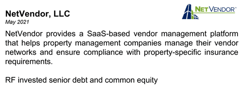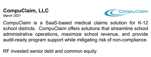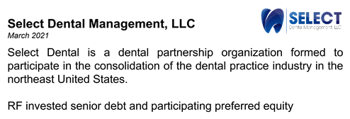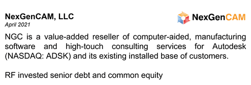 RF Investment Partners is an investment platform with more than $328 million of capital under management, dedicated to using flexible financing solutions to support exceptional management teams in lower-middle-market companies.